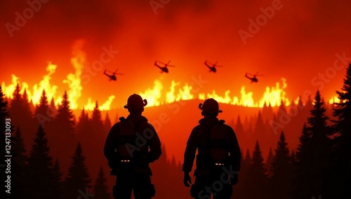 Fire fighting helicopter carry water bucket to extinguish the forest fire.