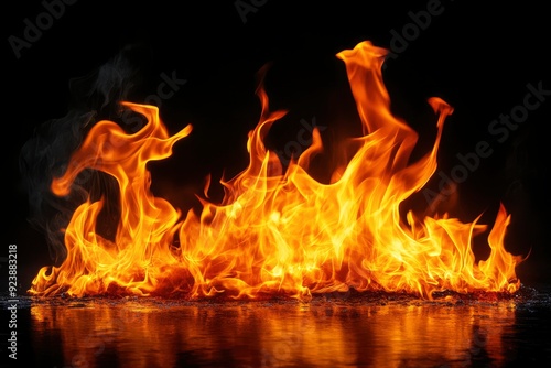 Fire flames on black background , ai