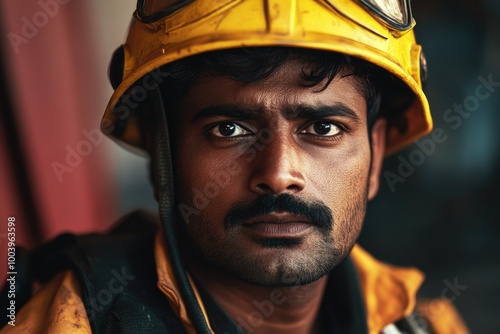 Firefighter in protective gear at a work site, ready to respond to emergencies.