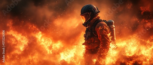 fire, firefighter, flames, blaze, inferno, danger, courage, hero, rescue, emergency, heat, smoke, intense, burning, fight, safety, protection, risk, bravery, sacrifice, duty, warrior, battle, struggle, survival, catastrophy, disaster, destruction, dramatic, powerful, action, scene, image, photograph, graphic, visual