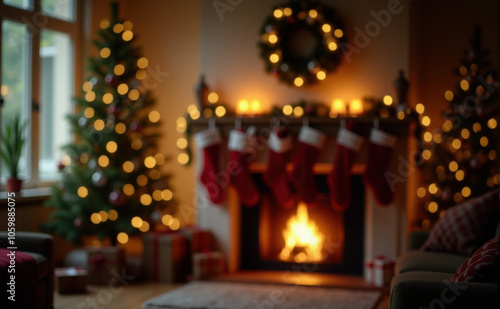 fireplace with christmas tree