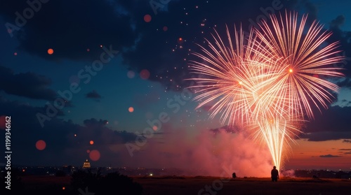 Fireworks display celebrating independence day city skyline event presentation night sky elevated view information share