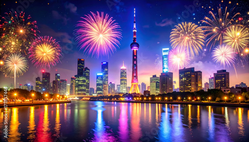fireworks, city landscape, night, skyline, reflections, river, celebration, urban, light, colourful, building, architecture, nightlife, festive, spectacular, landmark, metropolis, illumination, holiday, night time, sky, waterfront, city, neon, evening, scenery, tour tourism, travel, vibrant