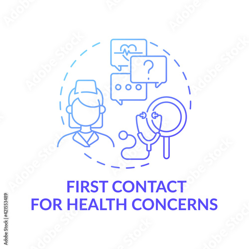 concept, icon, illustration, first, contact, health, concern, family, doctor, health care, medicals, disease, disease, professional, service, help, aid, assistance, emergency, problem, treatment, medicine, general, practitioner, exam, test, check, visit, idea, vector, isolated, abstract, art, web, graphic, notion, drawing, line, contour, outline, complex, round, circle, blue, gradient, dark