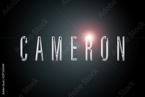 first name Cameron in chrome on dark background with flashes