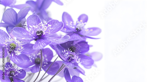 First spring flowers Anemone hepatica isolated on white background Border of blue violet wild forest flowers liverwort : Generative AI