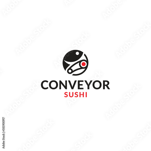 fish, conveyer, sushi, japanese, food, japan, eatery, stall, animal, circular, circle, template, simple, flat, minimalist, logotype, icon, red, black, vector, brand, design, graphic