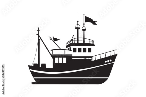 Fishing Boat silhouette vector illustration, Fishing Boat silhouette vector