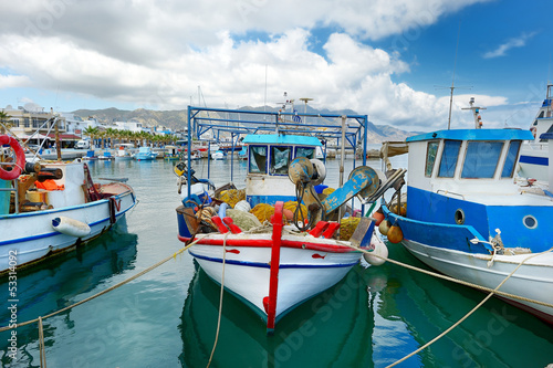 Fishing boats in a harbor