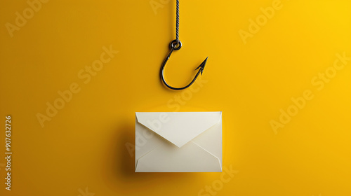 Fishing Hook with an Envelope Symbolizing Email Phishing