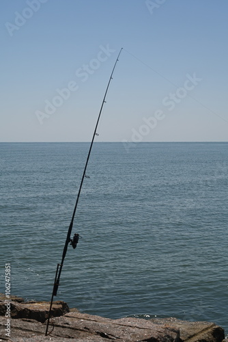 Fiship Pole on Jetty Gulf of Mexico fishing Sunny Day