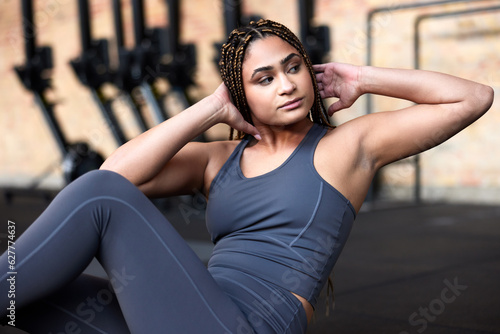 fitness, gym, woman, working out, abs, active, adult, alone, athletic, black, confident, core, determination, drive, effort, endurance, exercising, female, floor, sharpened, girl, goal, healthy, inside, leisure, lifestyle, mat, muscle, 1, person, real, recreation, sitting, activewear, sportswoman, sporty, perspiring, training, twisting, physical exercise, young, cross