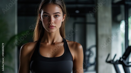 woman, fitness, gym, portrait, healthy, lifestyle, exercise, physical exercise, training, sport, active, athletic, strong, beautiful, young, female, model, person, indoor, equipment, body, health, wellness, motivation, dedication, strength, beauty, confident, determined, focused, serious, activewear, activewear, sportswoman