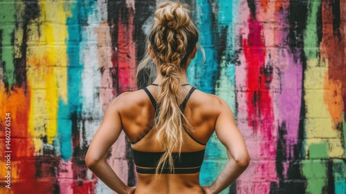 Fitness in Motion Back View of Athletic Woman in Clean Sharp Focus with Soft Shadows background