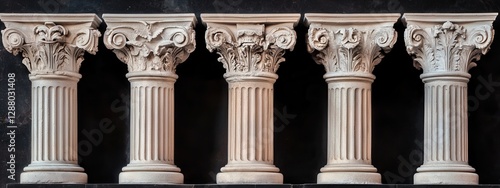 Five Elegant Architectural Columns Showcasing Classic Greek and Roman Designs with Intricate Details and Textures