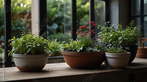window, sill, plant, potted, pot, flower, red, green, wood, table, houseplant, home, decor, garden, indoor, nature, foliage, bloom, growth, spring, summer, life, botanical, botany, flora, floral, natural, light, sunshine, bright, vibrant, fresh, blooming, flourishing, healthy, palmy, beautiful, colourful, decoration, arrangement, interior, design, style, view, windowpane, glasses
