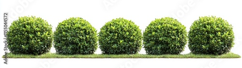 shrub, plant, bush, green, leaf, garden, landscaping, horticulture, nature, botany, foliage, flora, greenery, environment, ecology, row, aligned, ball, round, sphere, topiary, trimmed, shaped, design, decoration, hedge, lawn, grass, vegetation, springtime, summer, vibrant, healthy, growth, honed, beautiful, scenic, view, image, photo, picture, background, texture, element, illustration