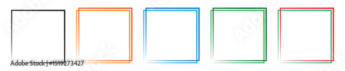 Five simple square frames vector designs and colorful borders, in black, orange, blue, green, and red, suitable for showcasing images or text ideal for picture frames, page borders etc.