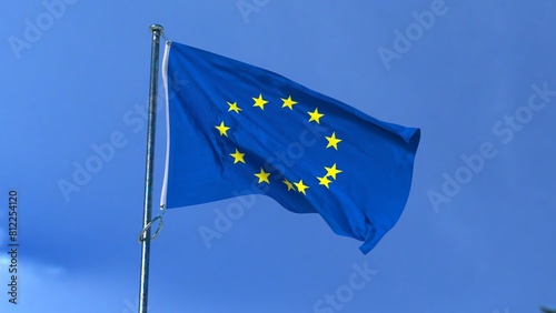 abstract, art, background, blue, colours, country, day, flag, flying, freedom, illustration, mast, middle, nation, national, nobody, patriotism, signs, sky, star, symbol, white, wind, banner, waving, three-dimensional, state, pole, isolated, wave, emblem, eu, europa, union