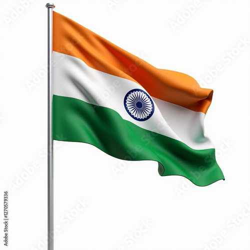 flag, india, symbol, country, nation, national, wind, waving, icon, asia, banner, three-dimensional, patriotism, buttons, white, isolated, illustration, earth, wave, green, national flag, orange, state