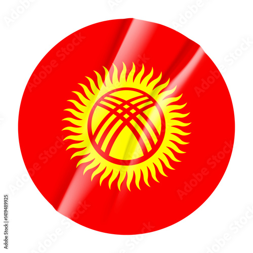 Flag of Kyrgyzstan flag round sticker. 3d illustration wrinkled flag sticker patch transparation png