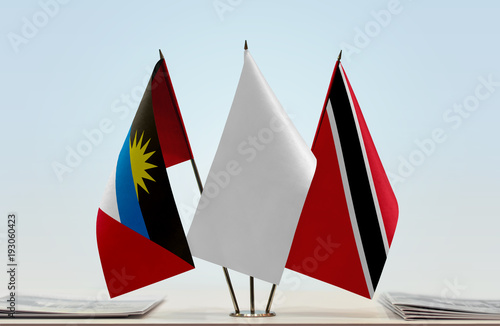 Flags of Antigua and Barbuda and Trinidad and Tobago with a white flag in the middle