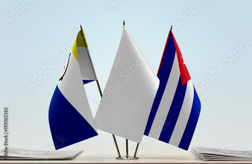Flags of Bonaire and Cuba with a white flag in the middle
