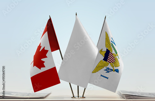 Flags of Canada and U.S. Virgin Islands with a white flag in the middle