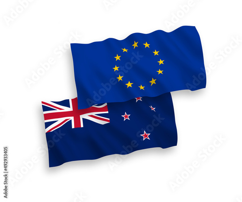 Flags of European Union and New Zealand on a white background