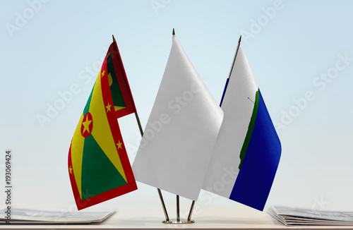 Flags of Grenada and Navassa Island with a white flag in the middle