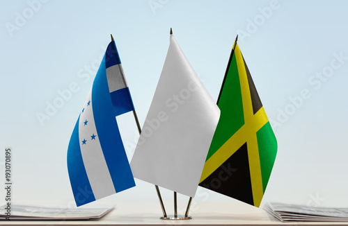 Flags of Honduras and Jamaica with a white flag in the middle