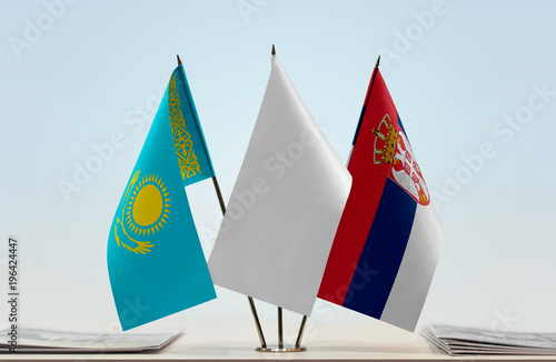 Flags of Kazakhstan and Serbia with a white flag in the middle