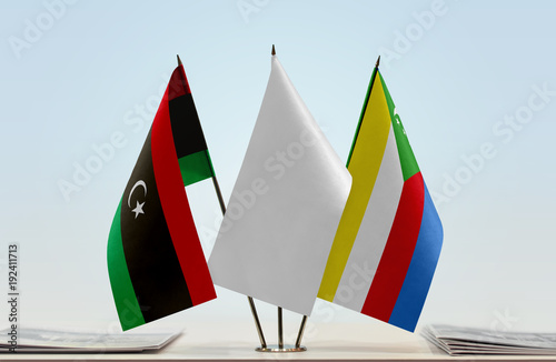 Flags of Libya and Comoros with a white flag in the middle