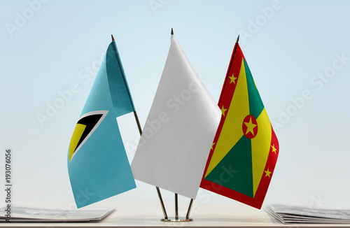 Flags of Saint Lucia and Grenada with a white flag in the middle