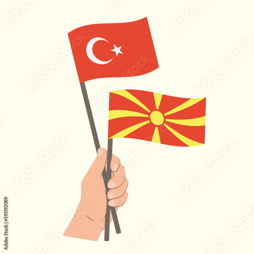 Flags of Turkey and North Macedonia, Hand Holding flags