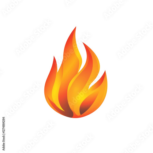 Flame icon in vibrant orange and yellow colors, representing heat and energy. This graphic design symbolizes fire, warmth, and passion