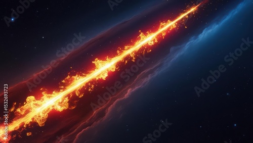 Flaming Meteorite in Space Universe