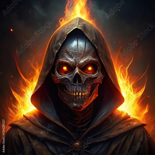 "Flaming Reaper – The Hooded Skull of Fire and Darkness"