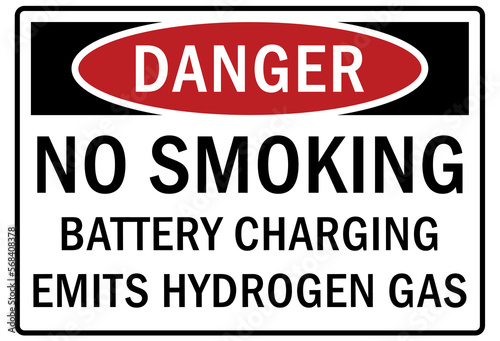 Flammable gas warning sign and labels no smoking battery charging emits hydrogen gas