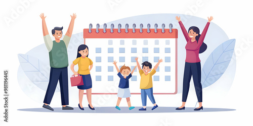 Flat Candid Family Calendar Celebration: Capture Joyful Moments of Togetherness with a 2025 Milestone Calendar in Simple Vector Illustration
