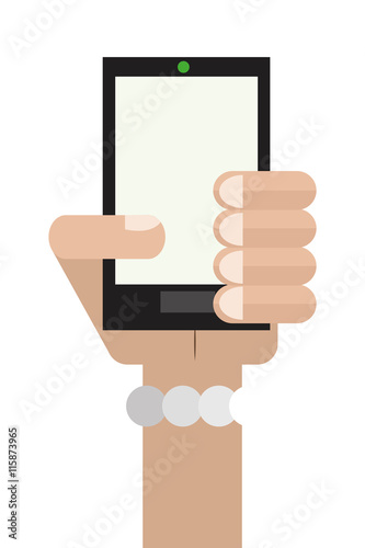 flat design hand holding cellphone icon vector illustration