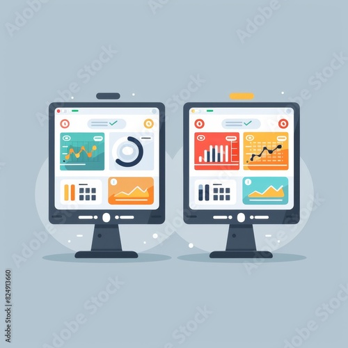 side by side, statistic, clean, contemporary, optimization, testing, comparison, professional, computer, screen, icon, business, monitor, laptop, technology, web, design, illustration, display, symbol, cyberspace, office, flat, concept, blank, tablet, equipment, mobile, television, three-dimensional, lcd
