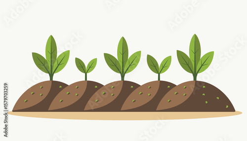Flat illustration of green seedlings growing in garden beds, eco farming and spring planting concept with space to copy for sustainability or gardening design