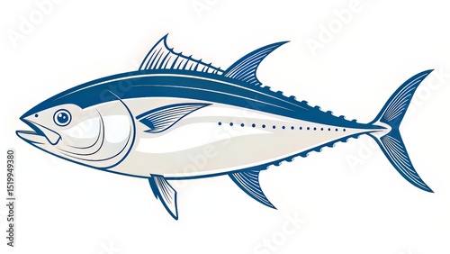 Flat Illustration of Tuna in Profile with Blue Accents for Education