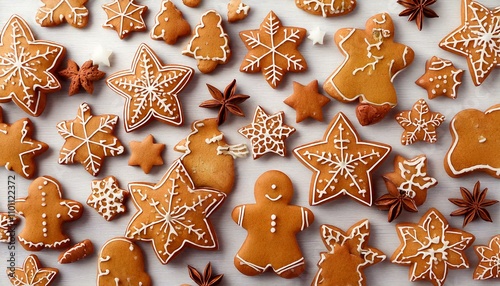 Flat Lay Christmas Pattern with Festive Gingerbread Cookies