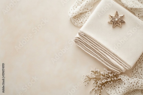 flat, lay, folded, prayer, mat, decorative, star, ornament, arranged, light, cream, background, clean, elegant, setup, leaf, plenty, copy space, customization, such, text, branding, empty space, art, minimal, composition, sharpened, simplicity, colours, unique, scene, concept, design, texture, high-quality, modern, creative, style, inspiration