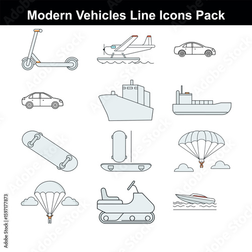 Flat Line Icons of Vehicles illustration on white background