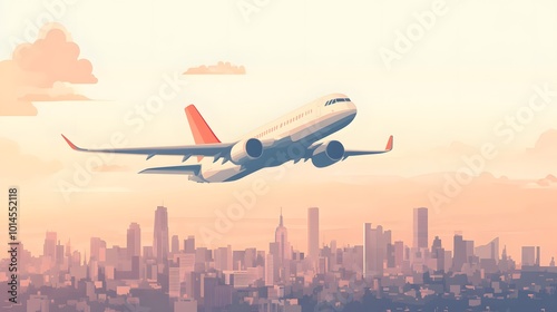 city landscape, travel, aircraft, transportation, city landscape, air travel, plane, skyline, flight, digital illustration, city skyline, aviation, graphic design, digital artwork