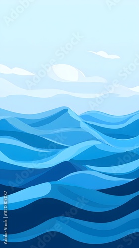 Flat vector illustration of blue ocean waves, simple flat design with a solid background