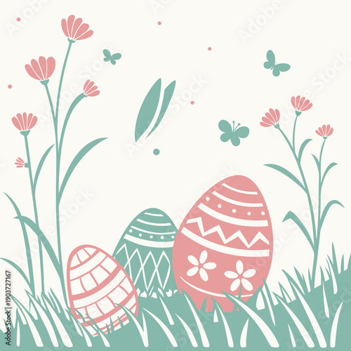 Flat Vector Pastel Spring Background with Easter Eggs for Web Headers and Print Media